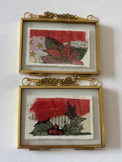 The collages are simple, layered papers and images, yet each has been hand tinted, or hand embellished to make them personal and truly one-of-a-kind. I look forward to seeing them on the tree!